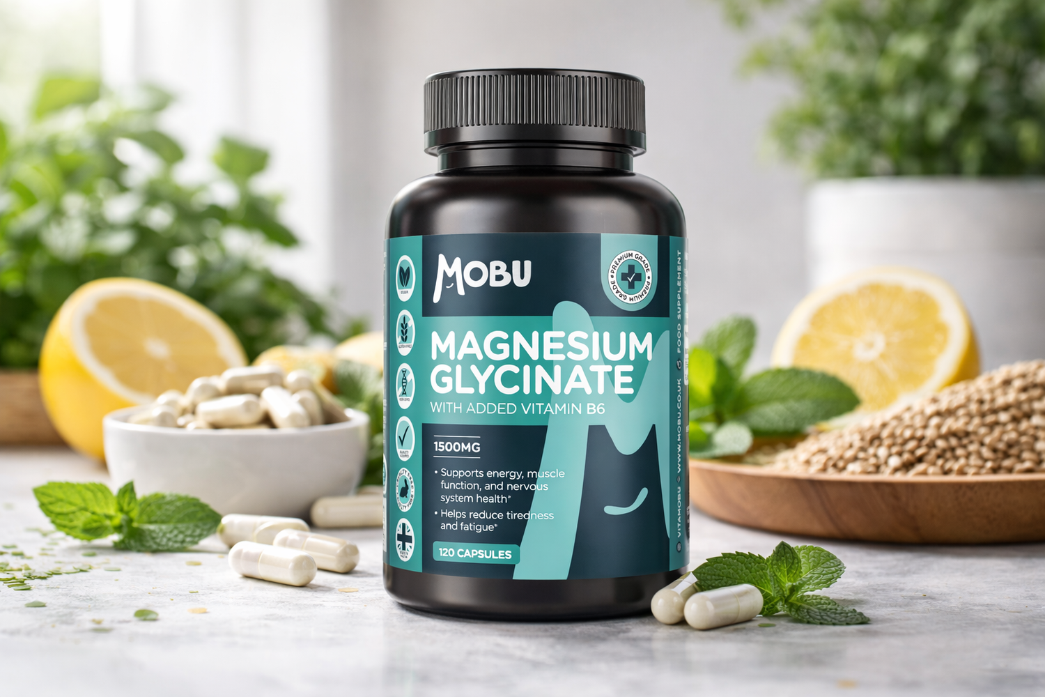Magnesium glycinate is widely studied for its gentle absorption and bioavailability compared with basic magnesium forms.Vitamin B6 is a well-known nutrient that contributes to normal energy metabolism.
